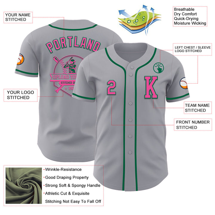 Custom Gray Pink-Kelly Green Authentic Baseball Jersey