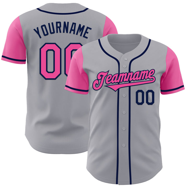Custom Gray Pink-Navy Authentic Two Tone Baseball Jersey