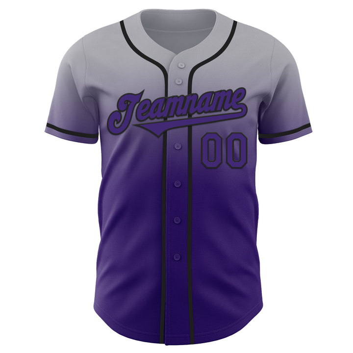 Custom Gray Purple-Black Authentic Fade Fashion Baseball Jersey