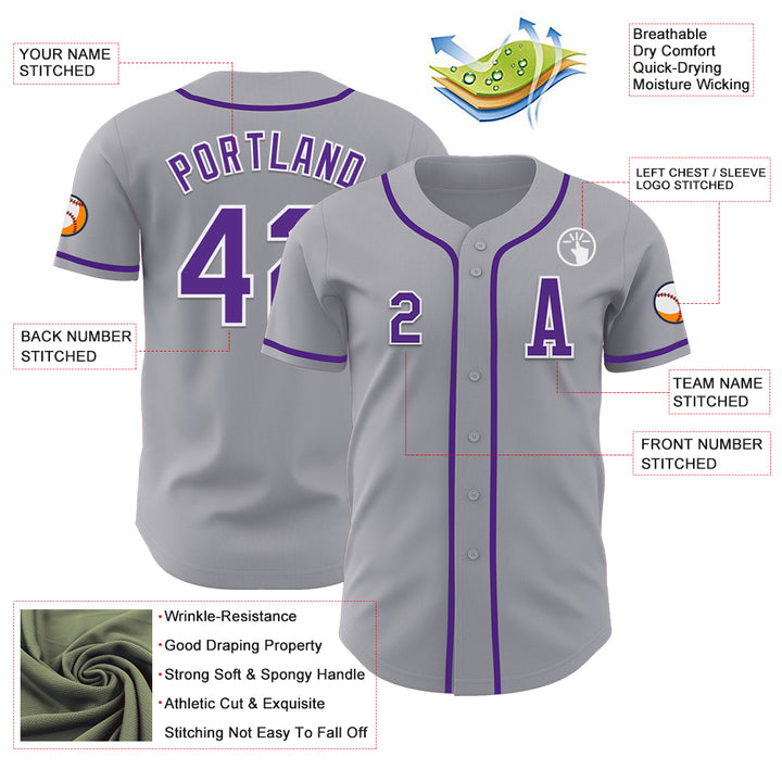 Custom Gray Purple-White Authentic Baseball Jersey
