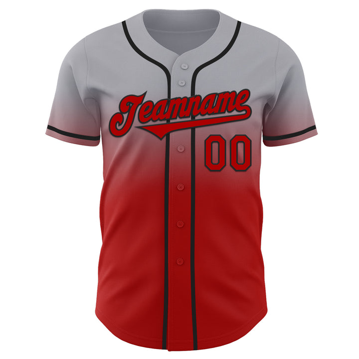 Custom Gray Red-Black Authentic Fade Fashion Baseball Jersey