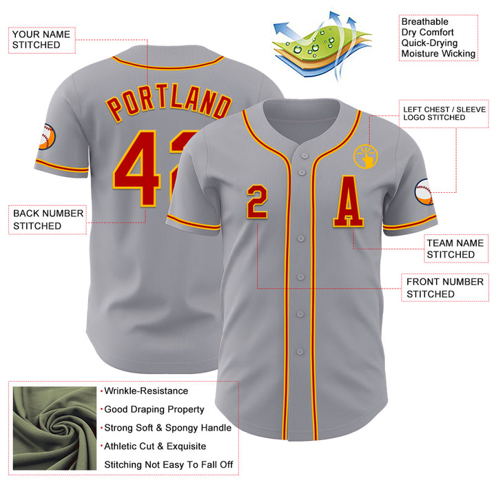 Custom Gray Red-Gold Authentic Baseball Jersey