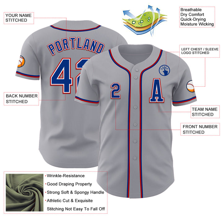 Custom Gray Royal-Red Authentic Baseball Jersey