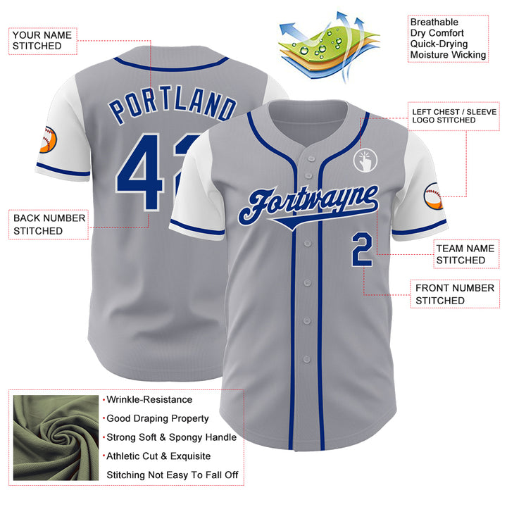 Custom Gray Royal-White Authentic Two Tone Baseball Jersey