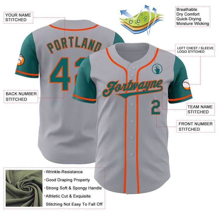 Custom Gray Teal-Orange Authentic Two Tone Baseball Jersey