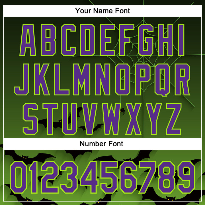Custom Green Purple Black-Neon Green 3D Halloween Spider Net Bats Party Costume Ideas Authentic Baseball Jersey