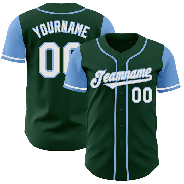 Custom Green White-Light Blue Authentic Two Tone Baseball Jersey