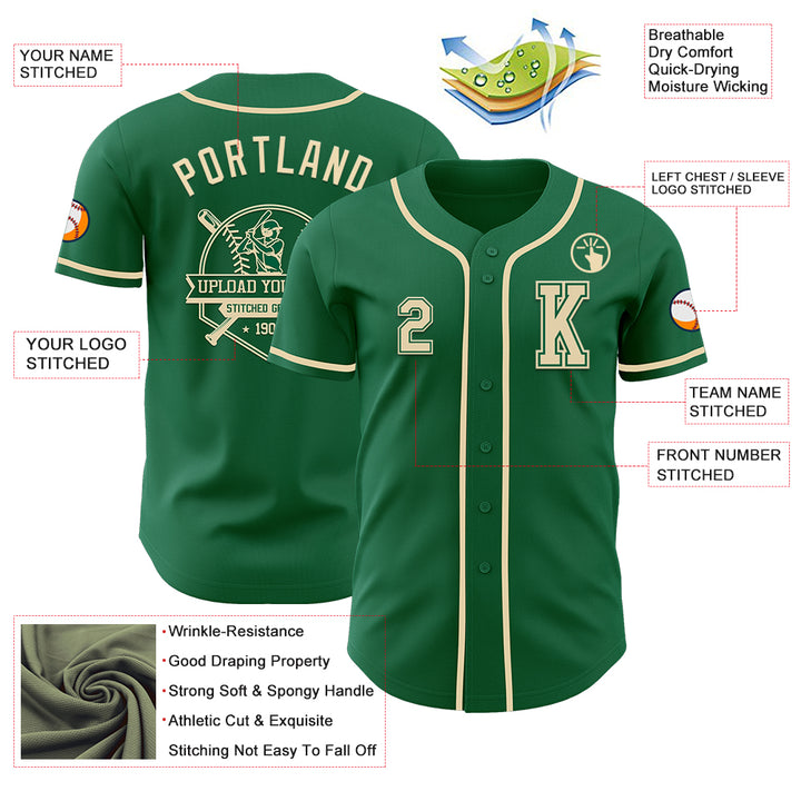 Custom Kelly Green Cream Authentic Baseball Jersey