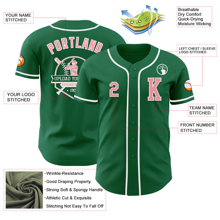 Custom Kelly Green Medium Pink-White Authentic Baseball Jersey