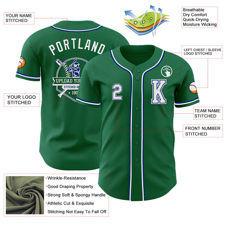 Custom Kelly Green White-Royal Authentic Baseball Jersey