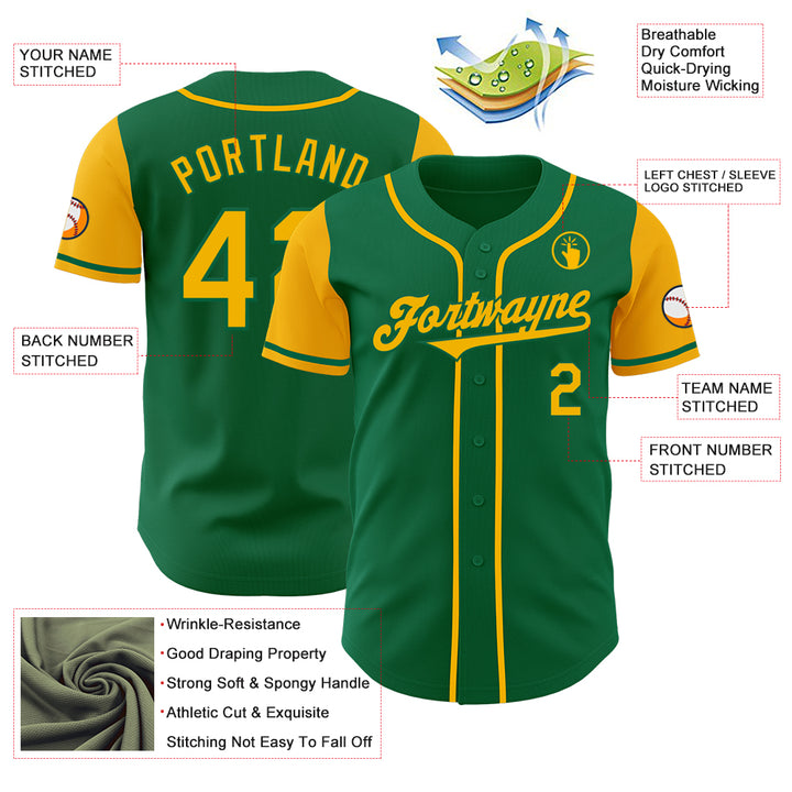 Custom Kelly Green Gold Authentic Two Tone Baseball Jersey