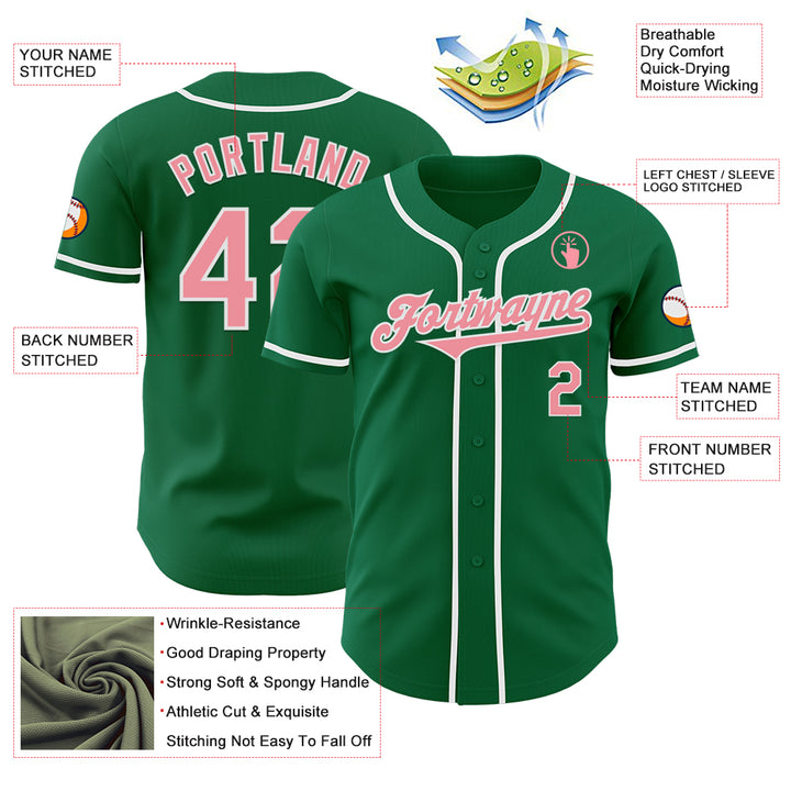 Custom Kelly Green Medium Pink-White Authentic Baseball Jersey