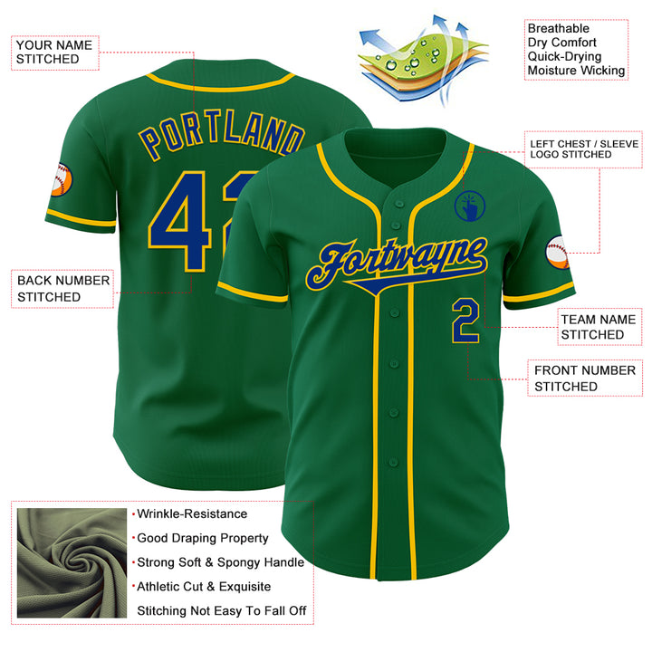Custom Kelly Green Royal-Yellow Authentic Baseball Jersey