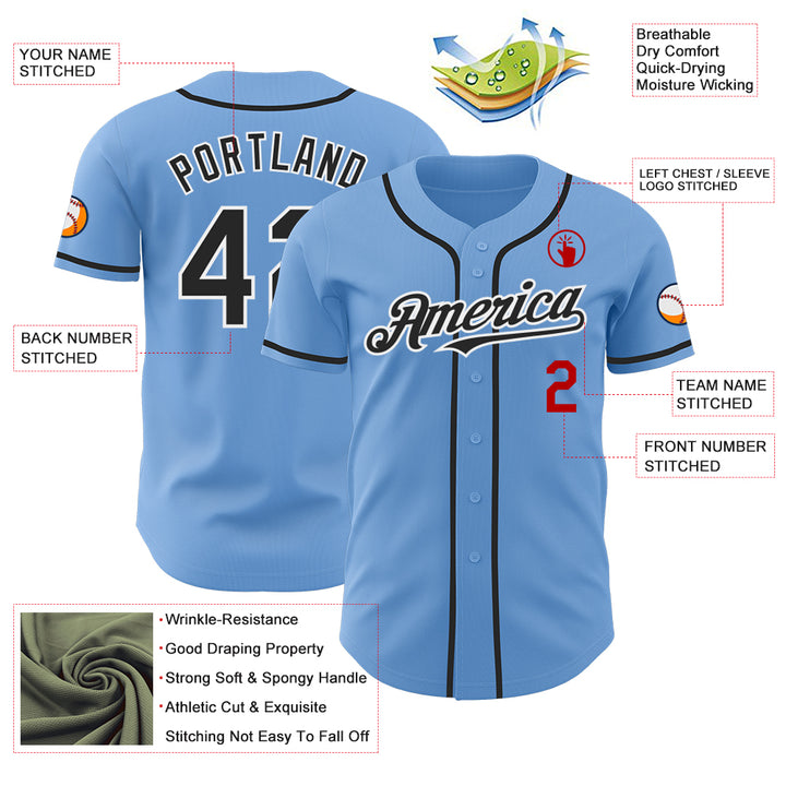 Custom Light Blue Black White-Red Authentic Baseball Jersey