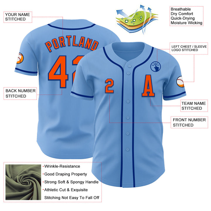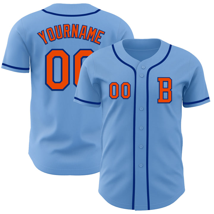 Custom Light Blue Orange-Royal Authentic Baseball Jersey