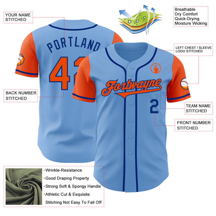 Custom Light Blue Orange-Royal Authentic Two Tone Baseball Jersey