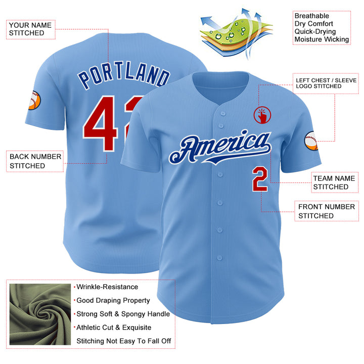Custom Light Blue Red White-Royal Authentic Baseball Jersey