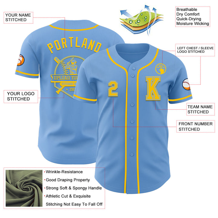 Custom Light Blue Yellow Authentic Baseball Jersey