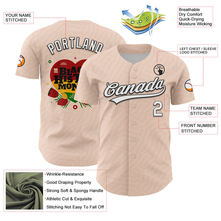 Custom Light Pink White-Black 3D Pattern Design Black History Month Authentic Baseball Jersey