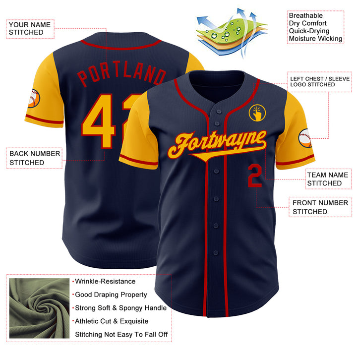 Custom Navy Gold-Red Authentic Two Tone Baseball Jersey