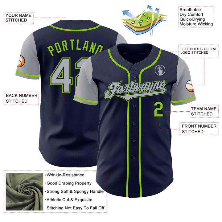 Custom Navy Gray-Neon Green Authentic Two Tone Baseball Jersey