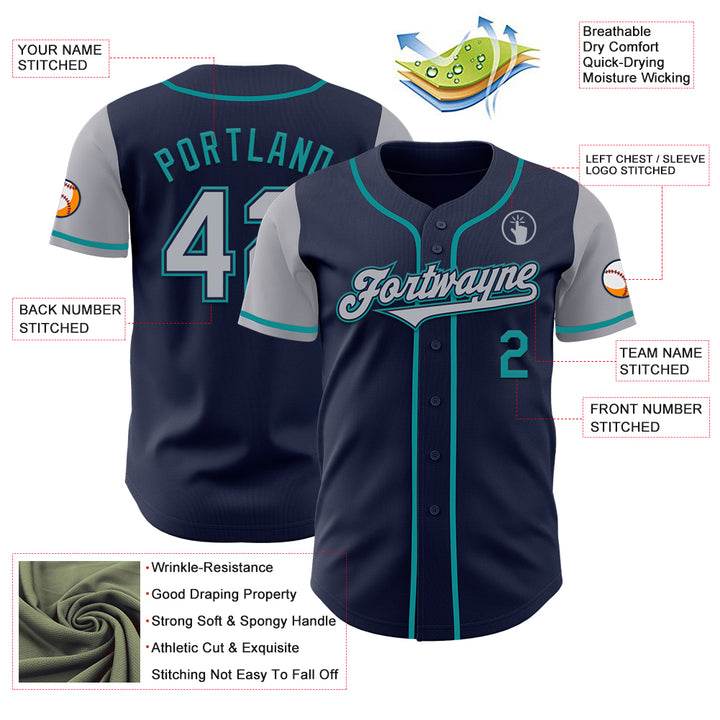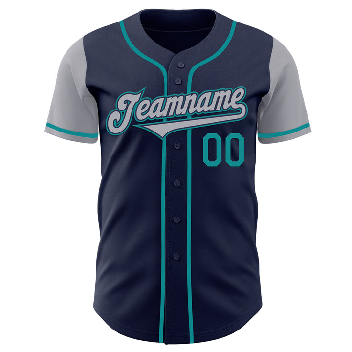 Custom Navy Gray-Teal Authentic Two Tone Baseball Jersey