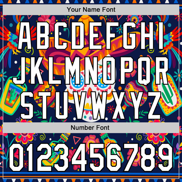 Custom Navy White-Black 3D Mexican Festival Flower Skull With Sombrero Cinco de Mayo Authentic Baseball Jersey