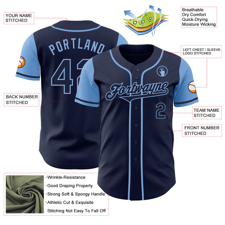 Custom Navy Light Blue Authentic Two Tone Baseball Jersey