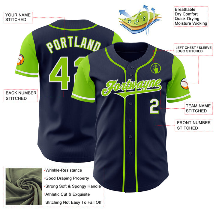 Custom Navy Neon Green-White Authentic Two Tone Baseball Jersey