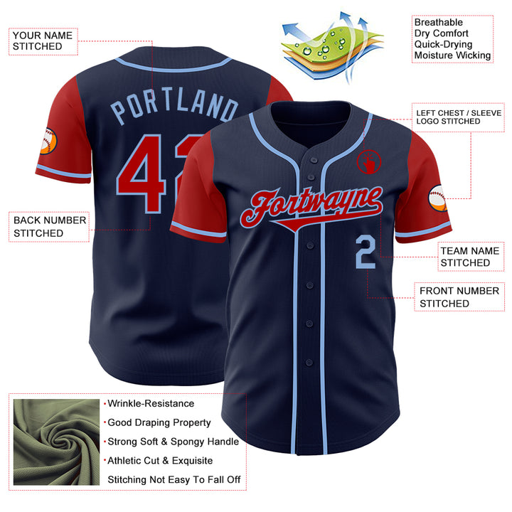 Custom Navy Red-Light Blue Authentic Two Tone Baseball Jersey