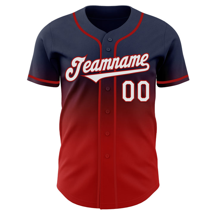 Custom Navy White-Red Authentic Fade Fashion Baseball Jersey