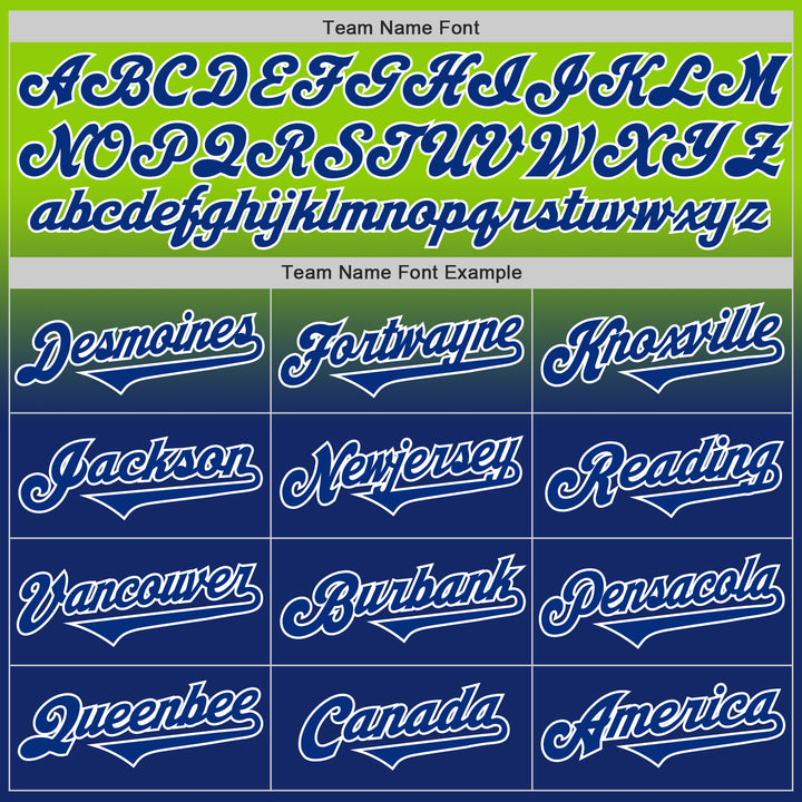 Custom Neon Green Royal-White Authentic Fade Fashion Baseball Jersey
