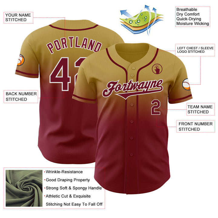 Custom Old Gold Crimson-White Authentic Fade Fashion Baseball Jersey