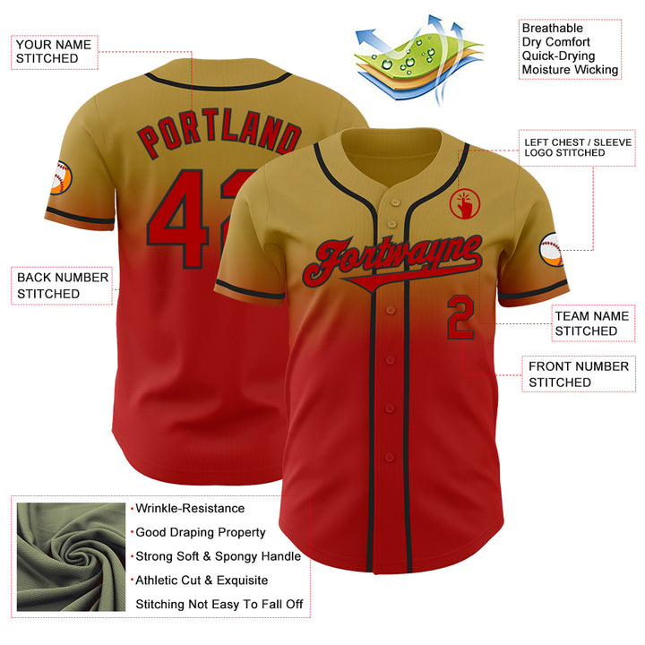 Custom Old Gold Red-Black Authentic Fade Fashion Baseball Jersey