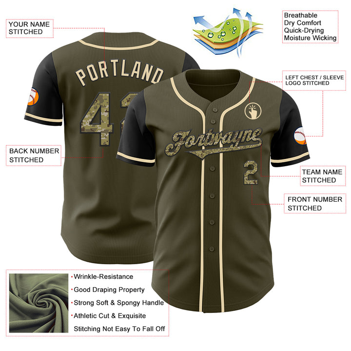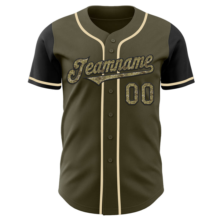 Custom Olive Camo Black-Cream Authentic Salute To Service Two Tone Baseball Jersey