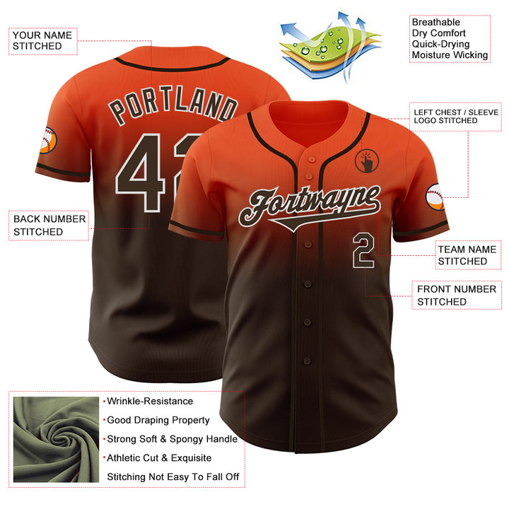 Custom Orange Brown-White Authentic Fade Fashion Baseball Jersey