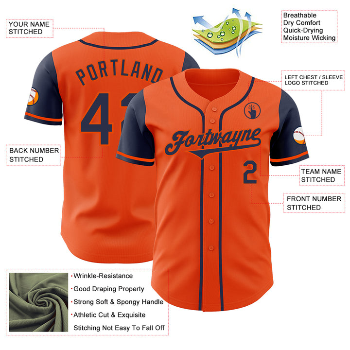 Custom Orange Navy Authentic Two Tone Baseball Jersey