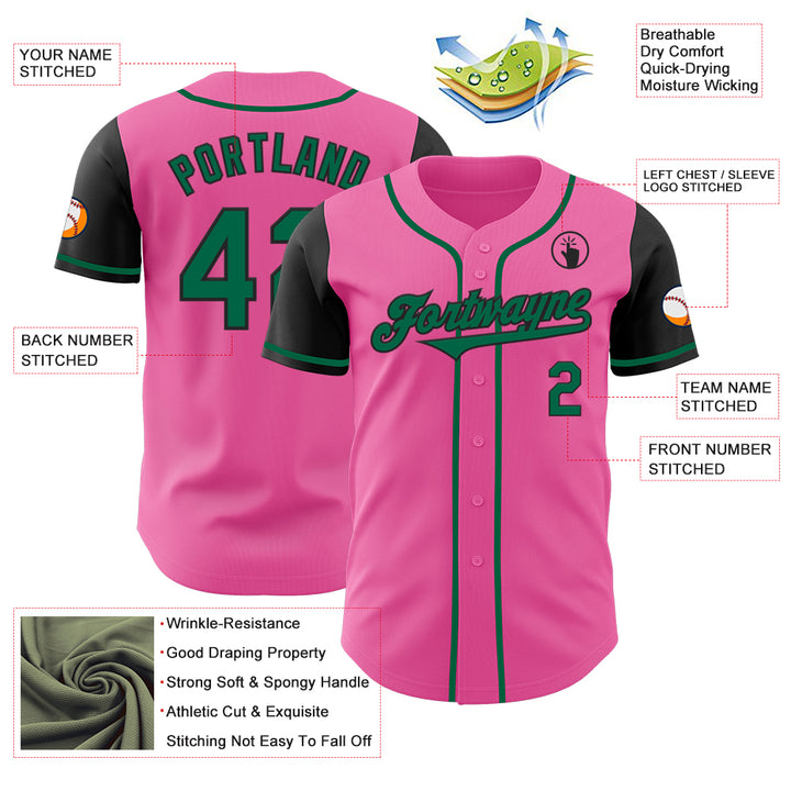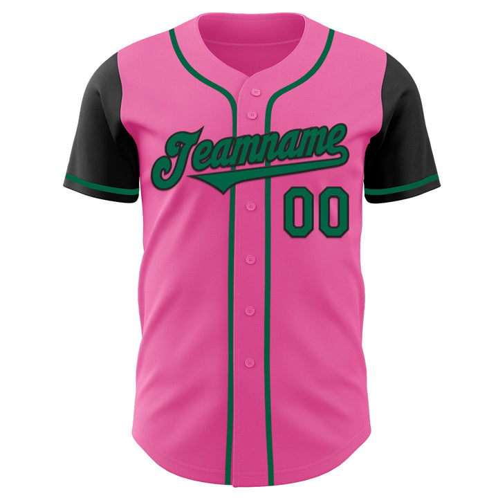 Custom Pink Kelly Green-Black Authentic Two Tone Baseball Jersey