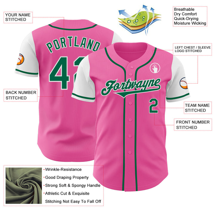 Custom Pink Kelly Green-White Authentic Two Tone Baseball Jersey