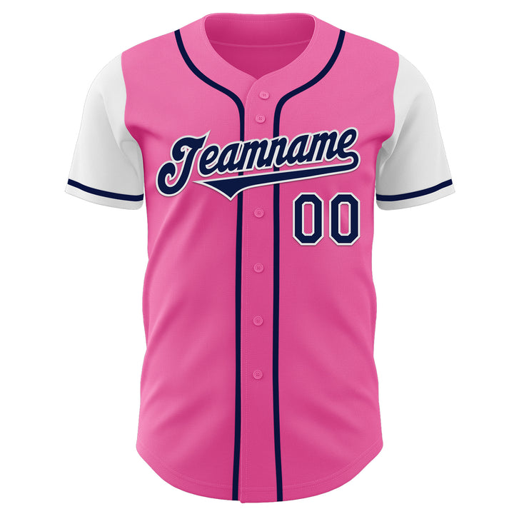 Custom Pink Navy-White Authentic Two Tone Baseball Jersey