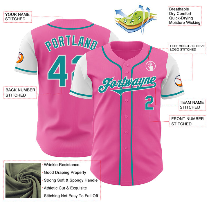 Custom Pink Teal-White Authentic Two Tone Baseball Jersey