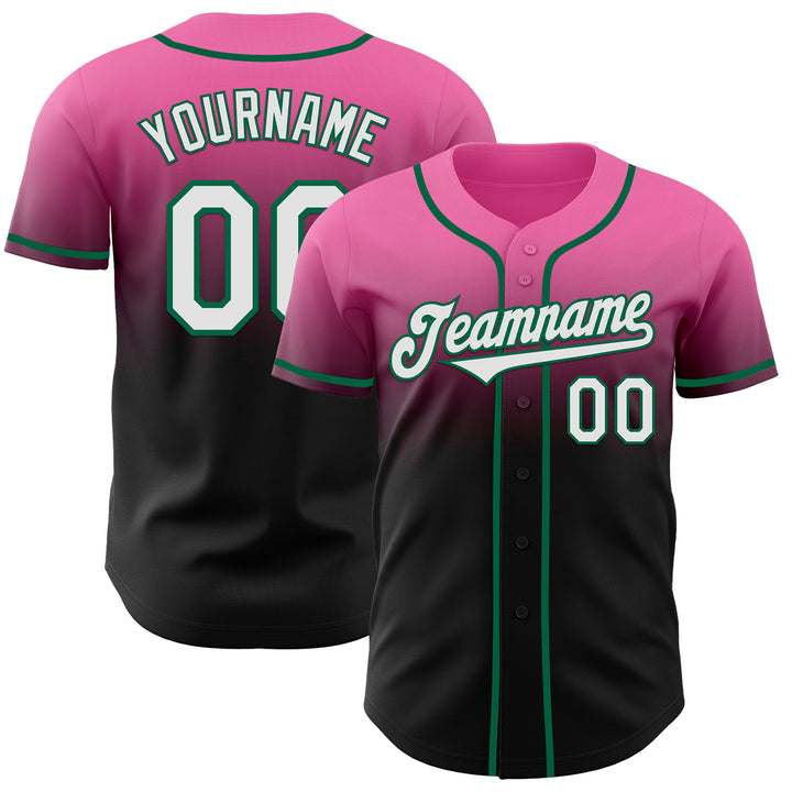 Custom Pink Black-Kelly Green Authentic Fade Fashion Baseball Jersey
