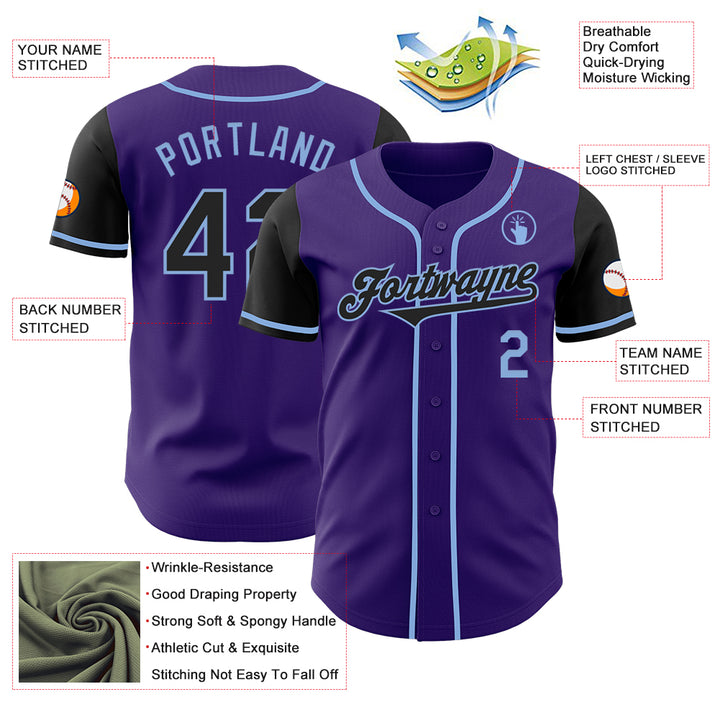 Custom Purple Black-Light Blue Authentic Two Tone Baseball Jersey