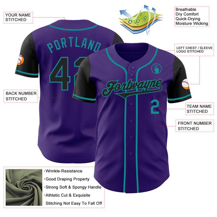 Custom Purple Black-Teal Authentic Two Tone Baseball Jersey
