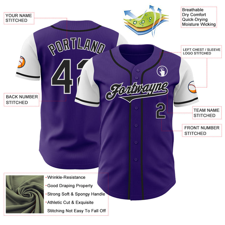 Custom Purple Black-White Authentic Two Tone Baseball Jersey