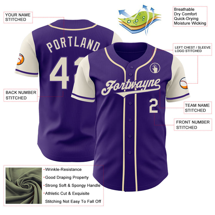 Custom Purple Cream Authentic Two Tone Baseball Jersey