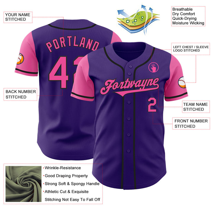 Custom Purple Pink-Black Authentic Two Tone Baseball Jersey