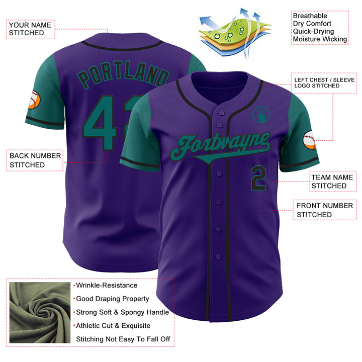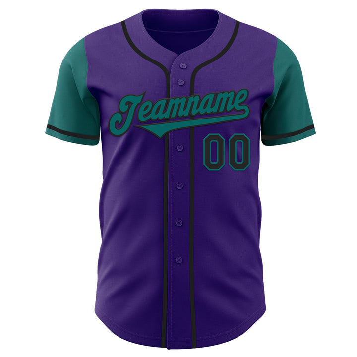 Custom Purple Teal-Black Authentic Two Tone Baseball Jersey