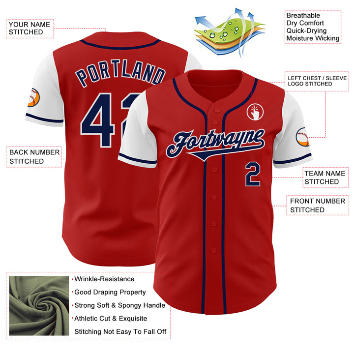 Custom Red Navy-White Authentic Two Tone Baseball Jersey