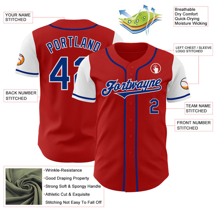 Custom Red Royal-White Authentic Two Tone Baseball Jersey